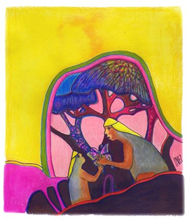 I’m painting it in my little new gallery. I have absolutely no interference, no one in this city so far cares. Maybe even nowhere else, but it is my world and I’m activated toward doing my calling.” -Inez Running-rabbit